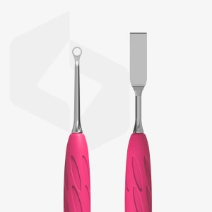 Powstałe w ten sposób popychacze czy kopytka posiadają dwie ulubione części z szerokiej gamy COMBO UNIQ. Dedykowana rączka COMBO UNIQ pasuje do każdej wymiennej części roboczej z tej serii. Rączka wygodnie leży w dłoni, nie ślizga się i nie odbija światła lampy, gdyż wykonano ją z aluminium. Dzięki czemu jest ona trzykrotnie lżejsza niż stalowe narzędzia manicure – pozwala to odciążyć dłonie i nadgarstki kosmetyczki czy podologa podczas pracy.